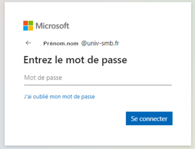 Par mesure de sécurité, nous préconisons d'avoir un mot de passe différent entre l'environnement Microsoft et l'environnement Universitaire.